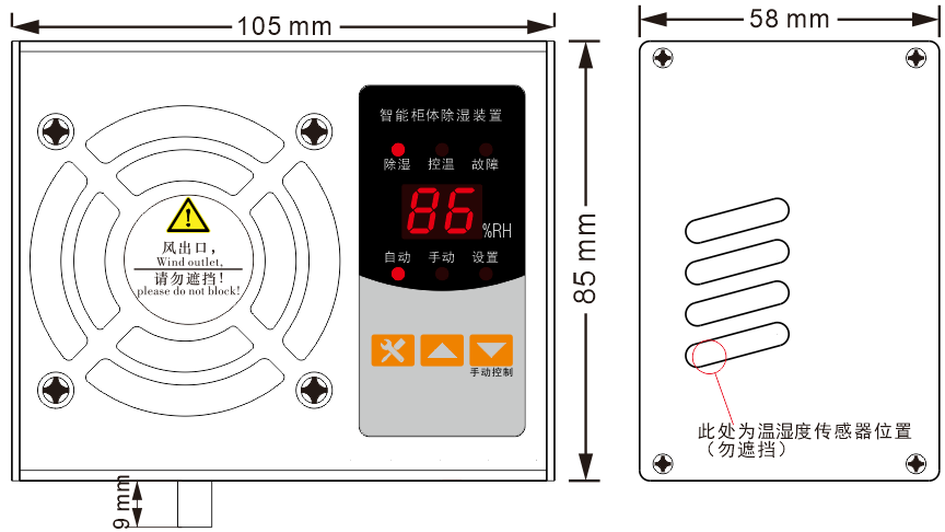 10、型號帶“T”的具有加熱功能,當檢測到箱體環(huán)境溫度低時,除濕裝置內(nèi)部的風機和外部加熱器啟動工作。